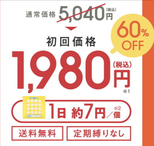 公式サイトの定期コースなら、この高品質なダニ捕りくんを初回60%OFFで試せるチャンス!